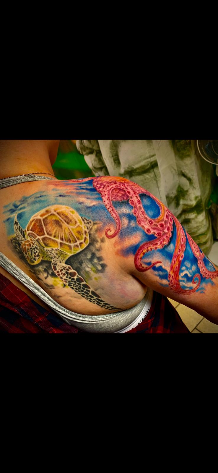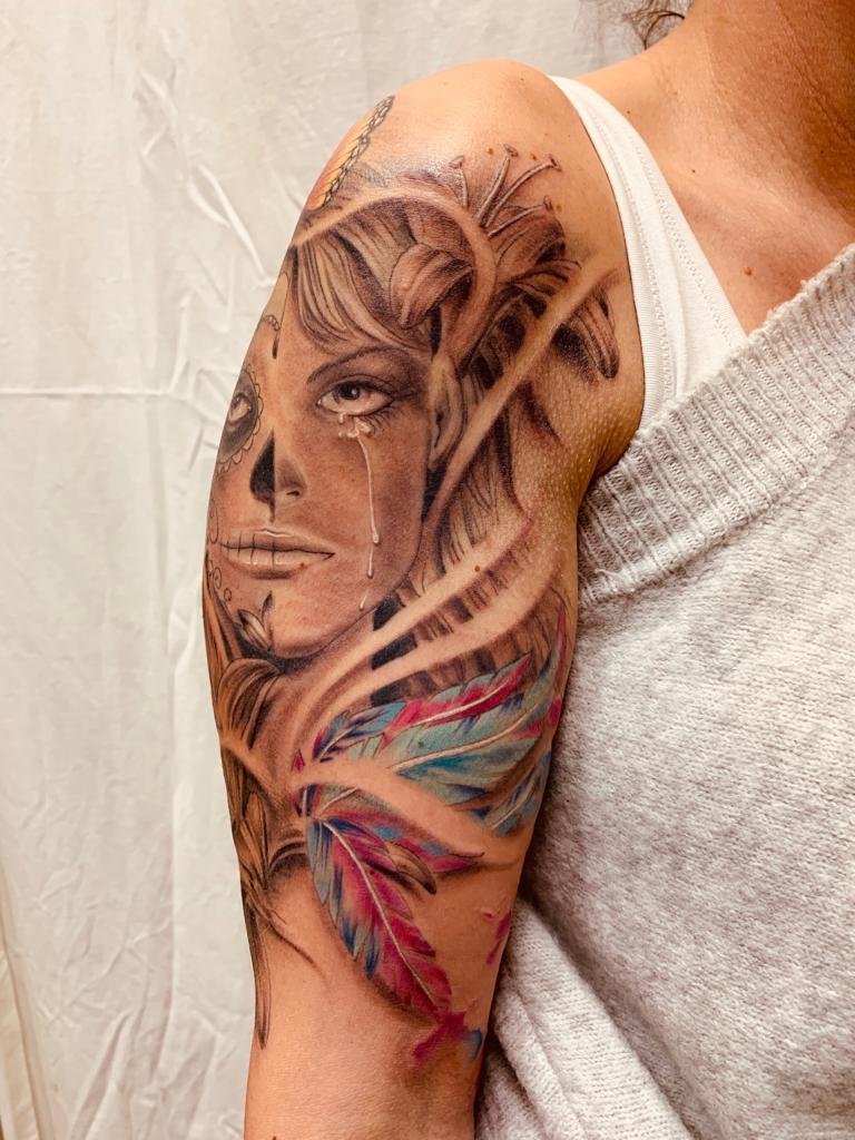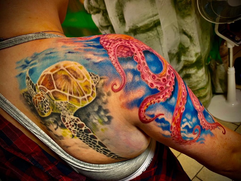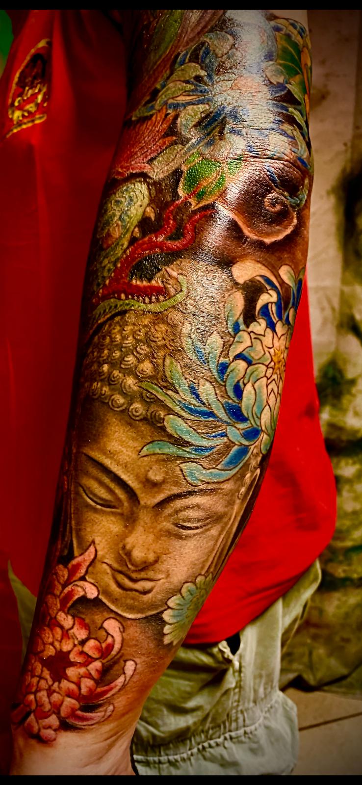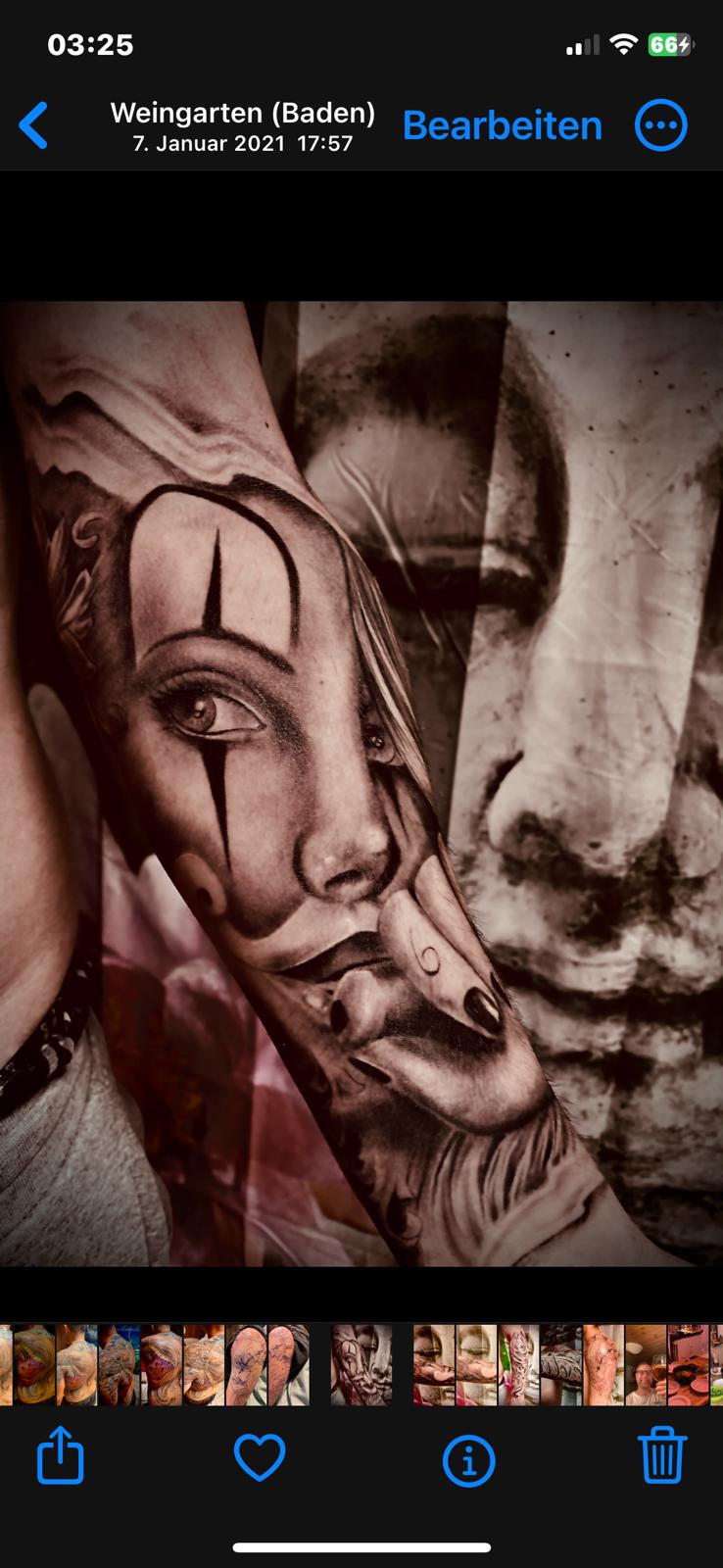 Bei mir bekommst du keine Standard-Tattoos, sondern Kunstwerke auf Haut, die so individuell sind wie du. Ob feine Details, kräftige Linien oder farbgewaltige Designs – ich bin ein Allround-Talent und kreiere alles, was dein Herz (und deine Haut) begehrt. Einen Vorgeschmack bekommst du in meiner Galerie, da siehst du, was alles möglich ist.